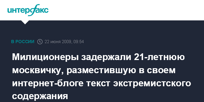 Милиционеры задержали 21-летнюю москвичку, разместившую в своем интернет-блоге текст экстремистского содержания