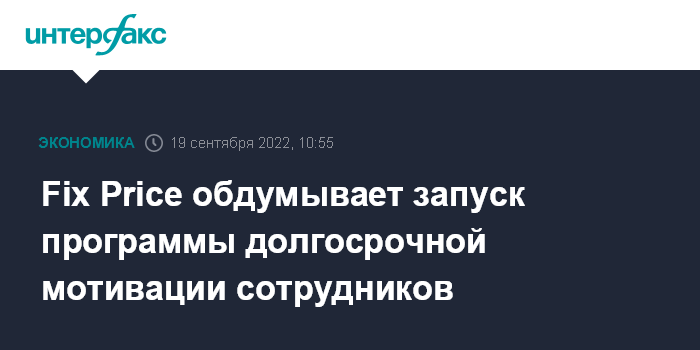 Москва. 19 сентября. INTERFAX.RU - Ритейлер Fix Price прорабатывает возможность запуска программы долгосрочной мотивации сотрудников, которая может предусматривать выкуп собственных депозитарных расписок. Компания пообещала своевременно сообщать о конкретных сроках и параметрах программы.