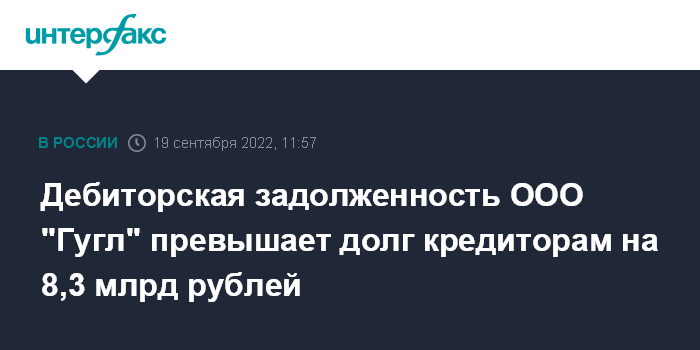 Дебиторская задолженность ООО "Гугл" превышает долг кредиторам на 8,3 млрд рублей