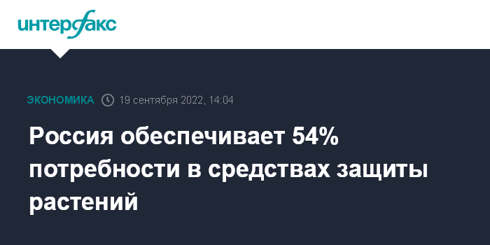 Москва. 19 сентября. INTERFAX.RU - Россия сейчас обеспечивает 54% потребности внутреннего рынка в средствах защиты растений и может нарастить объемы и номенклатуру производства для обеспечения технологической независимости в этой сфере, заявил вице-премьер - глава Минпромторга Денис Мантуров.