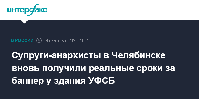 Супруги-анархисты в Челябинске вновь получили реальные сроки за баннер у здания УФСБ