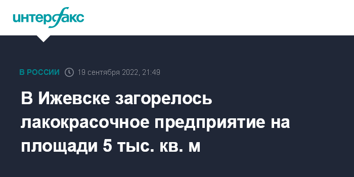 Москва. 19 сентября. INTERFAX.RU - Пожарные подразделения в понедельник вечером ликвидируют крупное возгорание в помещении по производству лакокрасочных материалов в Ижевске. Об этом сообщает главное управление МЧС РФ по Удмуртии.