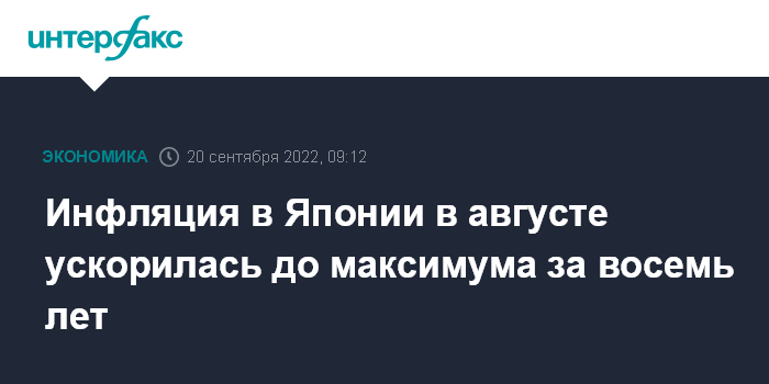 Инфляция в Японии в августе ускорилась до максимума за восемь лет