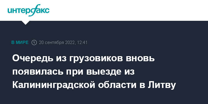 Москва. 20 сентября. INTERFAX.RU - На российско-литовской границе в очередной раз образовалась очередь из грузовиков, сообщила "Интерфаксу" руководитель пресс-службы Калининградской областной таможни Оксана Иванова.
