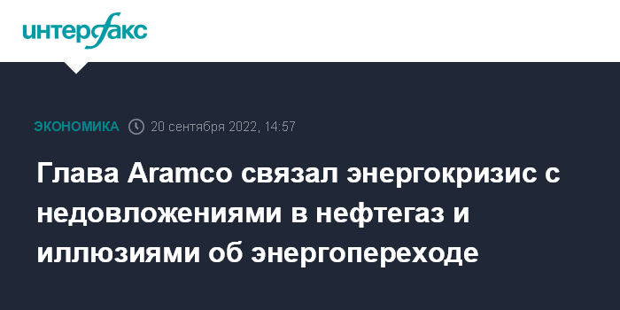 Конфликт на Украине, по его мнению, хоть и усилил последствия энергетического кризиса, но не является его первопричиной. "К сожалению, даже если бы конфликт прекратился сегодня (как мы все желаем), кризис не закончился бы. Кроме того, замораживание или ограничение цен на электроэнергию может помочь потребителям в краткосрочной перспективе, но не устраняет реальные причины и не является долгосрочным решением. И налогообложение компаний, когда вы хотите, чтобы они увеличили производство, явно не поможет", - сказал глава Saudi Aramco.