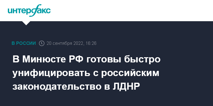 В Минюсте РФ готовы быстро унифицировать с российским законодательство в ЛДНР