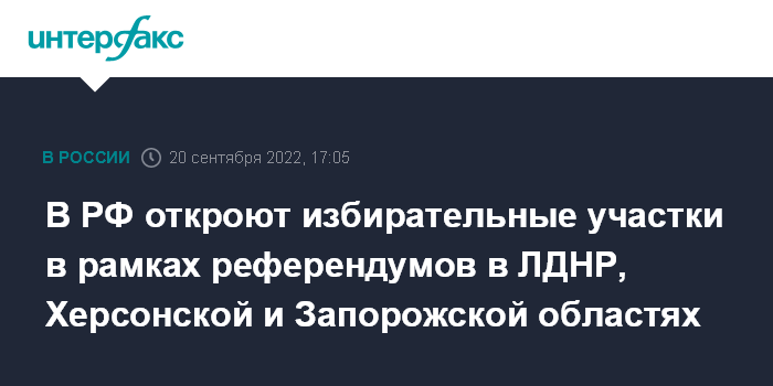 В РФ откроют избирательные участки в рамках референдумов в ЛДНР, Херсонской и Запорожской областях