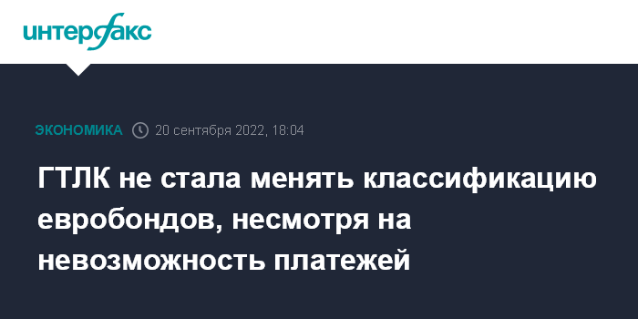 ГТЛК не стала менять классификацию евробондов, несмотря на невозможность платежей