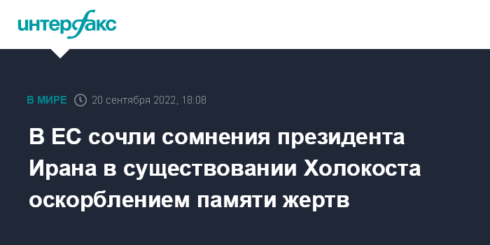 Москва. 20 сентября. INTERFAX.RU - Высказывания иранского президента Ибрахима Раиси о Холокосте произвели ужасное впечатление в Брюсселе, сообщил Петер Стано, официальный представитель главы дипломатии ЕС Жозепа Борреля.