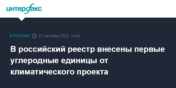 Москва. 21 сентября. INTERFAX.RU - Реестр углеродных единиц зарегистрировал первые углеродные единицы, сгенерированные климатическим проектом, сообщил в Совете Федерации глава Минэкономразвития Максим Решетников.