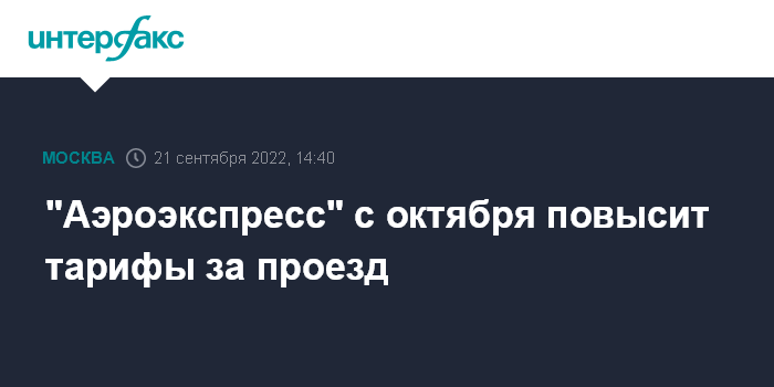 Москва. 21 сентября. INTERFAX.RU - "Аэроэкспресс" с 1 октября повысит стоимость проезда по некоторым тарифам, говорится на сайте компании.