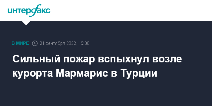 Москва. 21 сентября. INTERFAX.RU - Сильный лесной пожар начался в среду в районе турецкого курортного города Мармарис на побережье Эгейского моря, сообщает Associated Press.