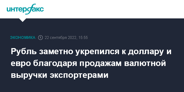 Москва. 22 сентября. INTERFAX.RU - Доллар США и евро заметно снижаются на "Московской бирже" в четверг днем; рубль укрепляется к бивалютной корзине, несмотря на рост геополитических рисков. Нацвалюта получает сильную поддержку за счет продаж валютной выручки экспортерами в условиях ограниченного спроса на валюту со стороны импортеров.