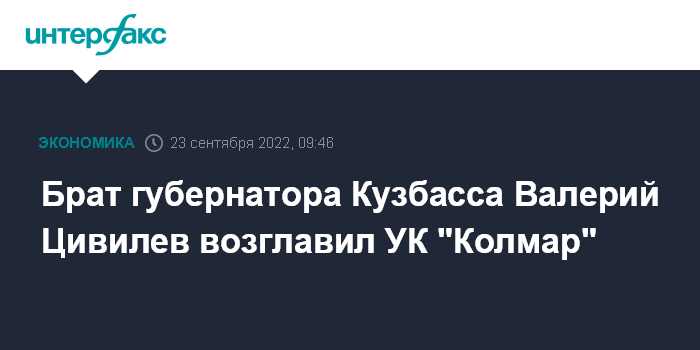 Брат губернатора Кузбасса Валерий Цивилев возглавил УК "Колмар"