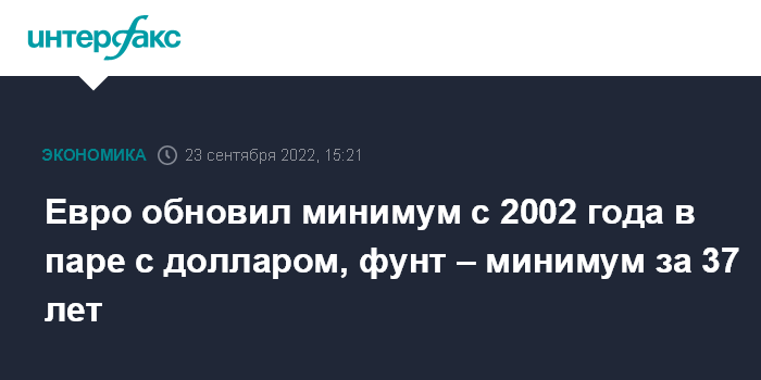 Евро обновил минимум с 2002 года в паре с долларом, фунт – минимум за 37 лет