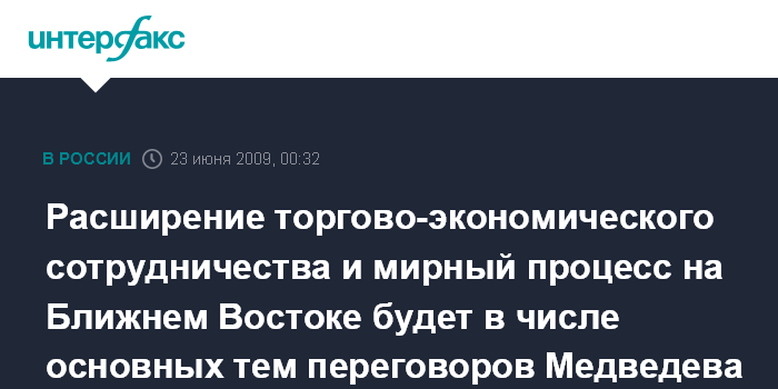 Расширение торгово-экономического сотрудничества и мирный процесс на Ближнем Востоке будет в числе основных тем переговоров Медведева в Каире