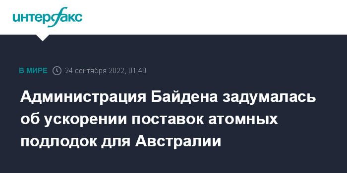 "Администрация Байдена изучает возможность ускорить приобретение Австралией атомных подводных лодок в ответ на растущий военный потенциал Китая", - говорится в сообщении.