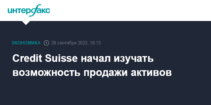 Москва. 26 сентября. INTERFAX.RU - Швейцарский банк Credit Suisse Group AG хорошо продвинулся в комплексном анализе своего бизнеса, в рамках которого рассматривает, в частности, возможность продажи активов, говорится в пресс-релизе банка.