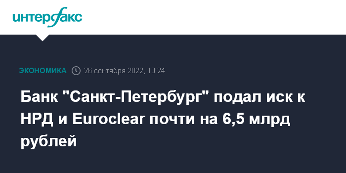Банк "Санкт-Петербург" подал иск к НРД и Euroclear почти на 6,5 млрд рублей
