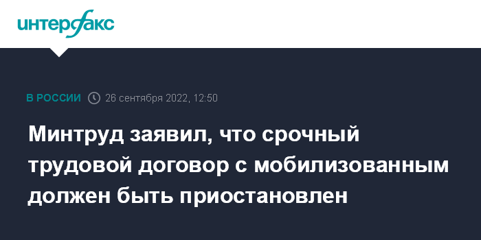 Минтруд заявил, что срочный трудовой договор с мобилизованным должен быть приостановлен
