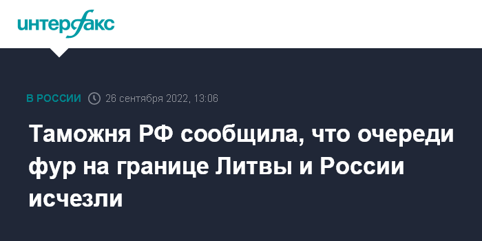 Москва. 26 сентября. INTERFAX.RU - Очереди грузовиков на российско-литовской границе по состоянию на утро понедельника отсутствуют, сообщили "Интерфаксу" в пресс-службе Калининградской областной таможни.