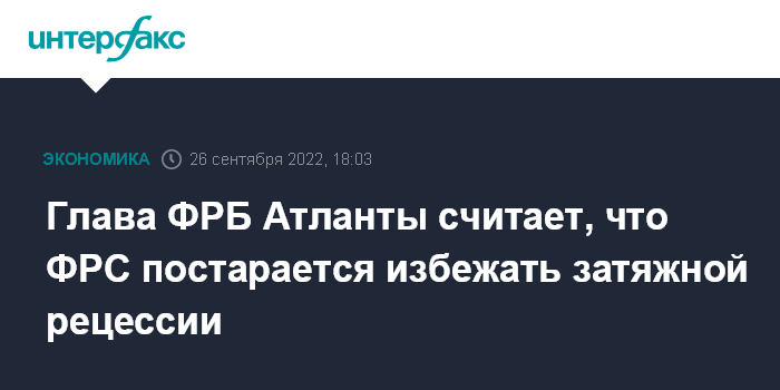 Глава ФРБ Атланты считает, что ФРС постарается избежать затяжной рецессии