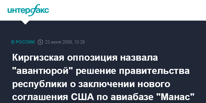 Киргизская оппозиция назвала "авантюрой" решение правительства республики о заключении нового соглашения США по авиабазе "Манас"
