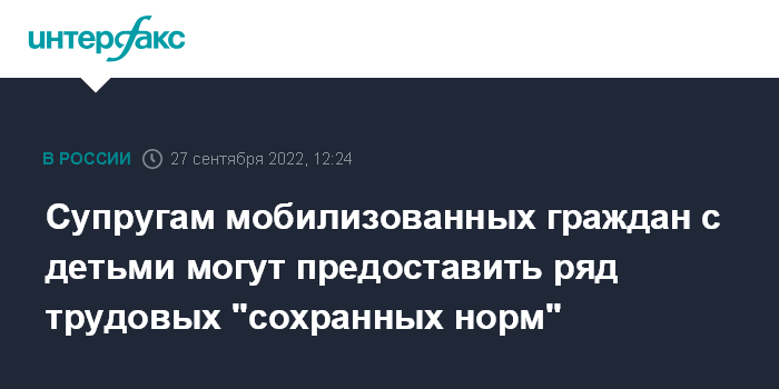Супругам мобилизованных граждан с детьми могут предоставить ряд трудовых "сохранных норм"