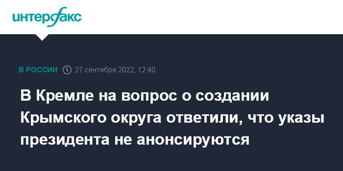 В Кремле на вопрос о создании Крымского округа ответили, что указы президента не анонсируются