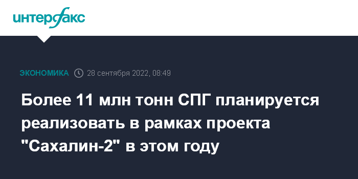 Москва. 28 сентября. INTERFAX.RU - По проекту "Сахалин-2" в текущем году планируется добыть 18 млрд кубометров газа и реализовать 11,4 млн тонн сжиженного природного газа (СПГ), сообщил губернатор Сахалинской области Валерий Лимаренко в среду на энергетическом форуме "Нефть и газ Сахалина-2022".