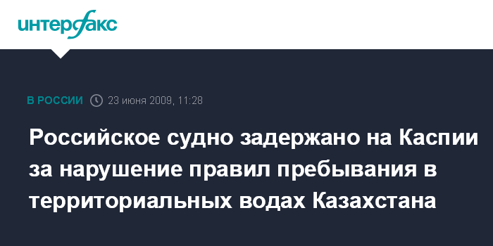 Москва. 23 июня. INTERFAX.RU - Казахстанские пограничники задержали российское судно "Навигатор" на Каспии за нарушение им правил пребывания в территориальных водах республики, сообщили агентству "Интерфакс-Казахстан" во вторник в региональном управлении (РУ) "Батыс" (Запад) погранслужбы Комитета нацбезопасности.