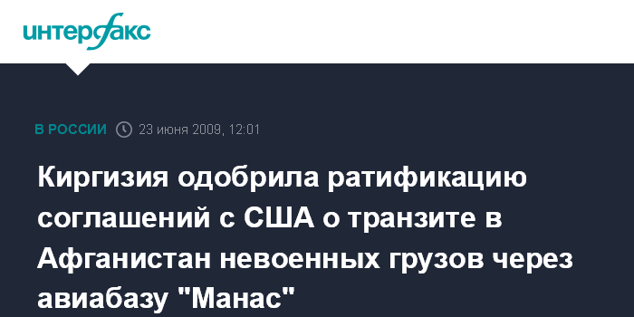 Москва. 23 июня. INTERFAX.RU - Комитет по обороне киргизского парламента на заседании во вторник одобрил предложение киргизского правительства о ратификации двух соглашений с США, передает корреспондент "Интерфакса".