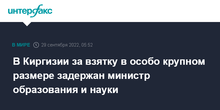 В Киргизии за взятку в особо крупном размере задержан министр образования и науки