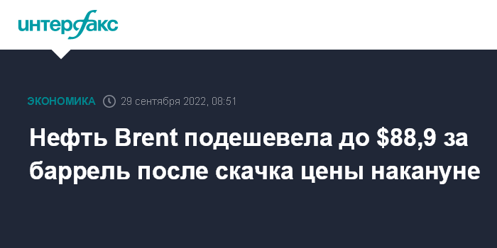Москва. 29 сентября. INTERFAX.RU - Цены на нефть демонстрируют умеренное снижение утром в четверг после резкого подъема по итогам торгов в среду, вызванного опасениями сокращения добычи в США из-за приближающегося урагана "Иэн".