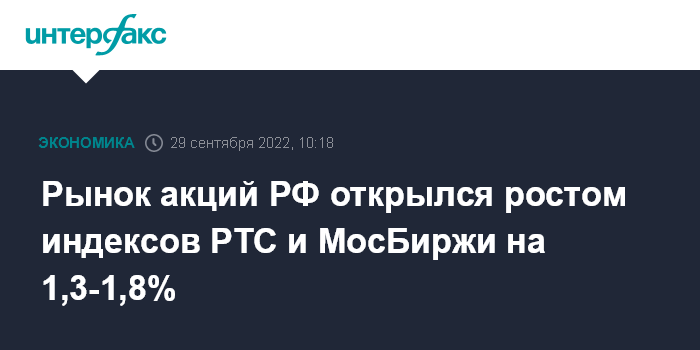 Рынок акций РФ открылся ростом индексов РТС и МосБиржи на 1,3-1,8%