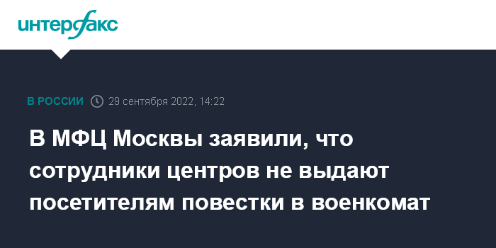 В МФЦ Москвы заявили, что сотрудники центров не выдают посетителям повестки в военкомат