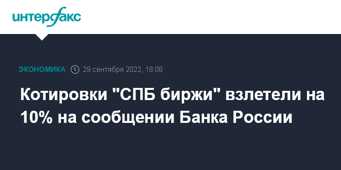 Котировки "СПБ биржи" взлетели на 10% на сообщении Банка России