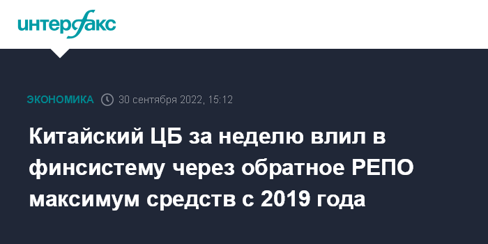 Китайский ЦБ за неделю влил в финсистему через обратное РЕПО максимум средств с 2019 года