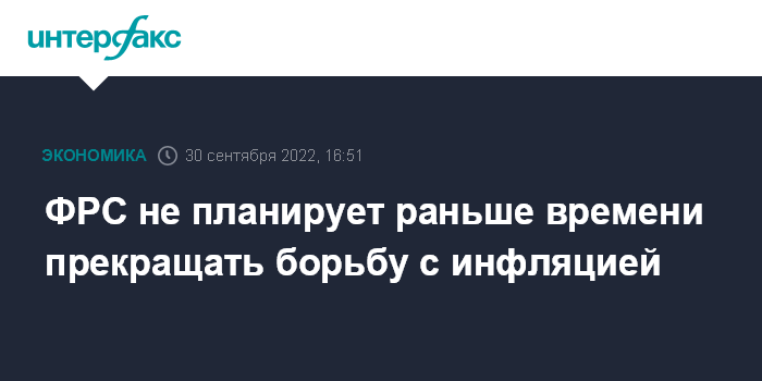 ФРС не планирует раньше времени прекращать борьбу с инфляцией