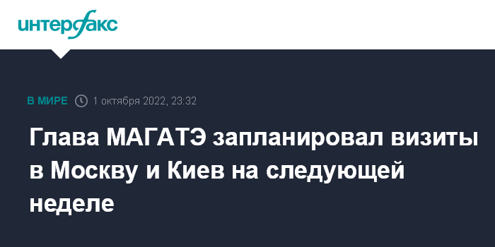 "Ожидается, что он посетит Москву и Киев на следующей неделе", - говорится в заявлении МАГАТЭ.