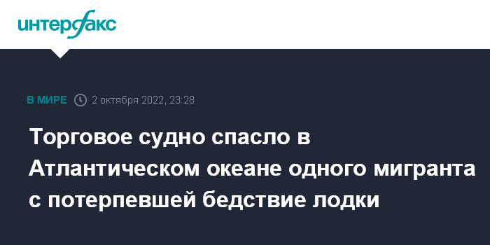Торговое судно спасло в Атлантическом океане одного мигранта с потерпевшей бедствие лодки