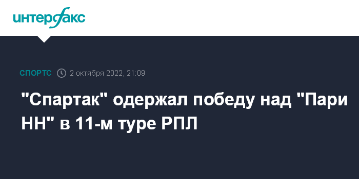 Москва. 2 октября. INTERFAX.RU - Футболисты московского "Спартака" в выездном матче 11-го тура Российской премьер-лиги (РПЛ) победили соперников из "Пари Нижний Новгород".