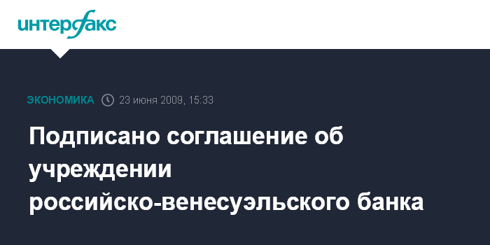 Ново-Огарево. 23 июня. INTERFAX.RU - Россия и Венесуэла подписали соглашение об учреждении российско-венесуэльского банка.