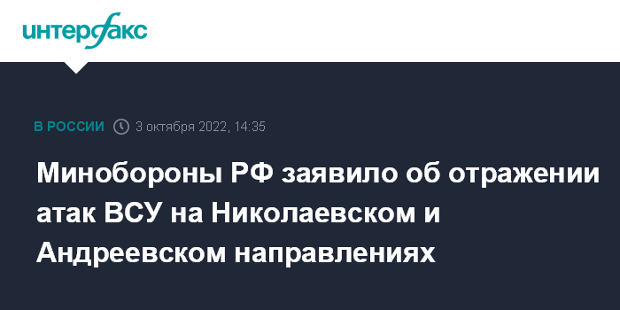 Минобороны РФ заявило об отражении атак ВСУ на Николаевском и Андреевском направлениях