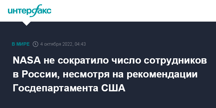 NASA не сократило число сотрудников в России, несмотря на рекомендации Госдепартамента США