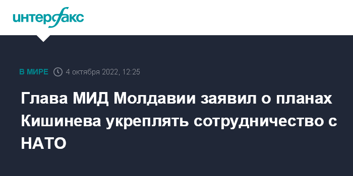 Глава МИД Молдавии заявил о планах Кишинева укреплять сотрудничество с НАТО