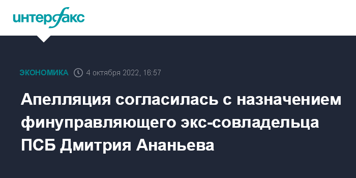 Суд 29 июня 2022 года частично удовлетворил иск ПСБ, решив взыскать с его экс-совладельцев Алексея и Дмитрия Ананьевых, а также ряда бывших топ-менеджеров 91,2 млрд рублей из требуемых 243,2 млрд рублей. Апелляция на это решение назначена на 24 октября.