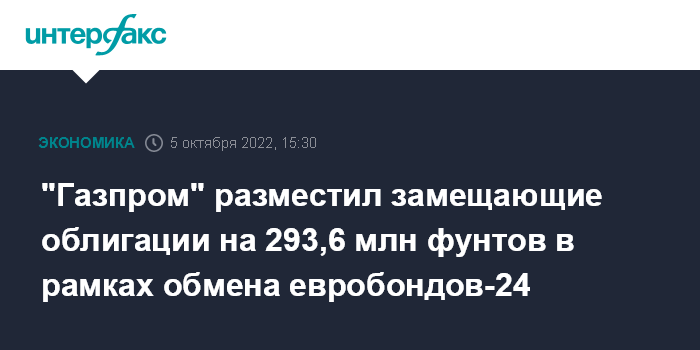 "Газпром" разместил замещающие облигации на 293,6 млн фунтов в рамках обмена евробондов-24