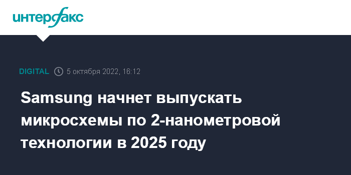 Москва. 5 октября. INTERFAX.RU - Южнокорейская Samsung Electronics Co. обнародовала цели по производству наиболее высокотехнологичных микросхем, впервые уточнив, как ее план развития будет отличаться от плана конкурента, Taiwan Semiconductor Manufacturing Co.
