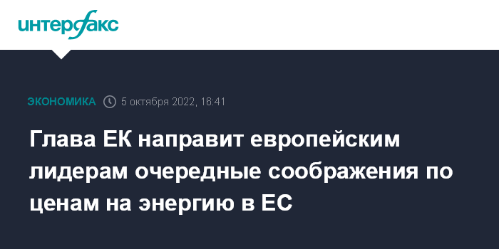 Глава ЕК направит европейским лидерам очередные соображения по ценам на энергию в ЕС